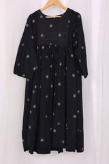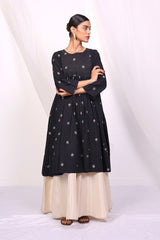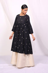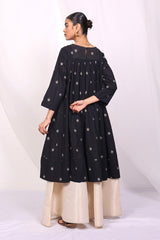 Flared jacquard buti tunic with pannels, stitching details on neckline and gathers.