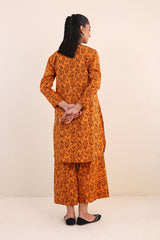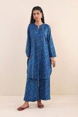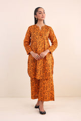 Printed Kurta with crochet details on sleeves. Paired with matching printed culottes.