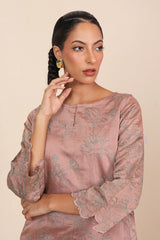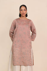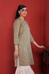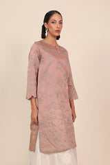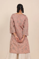 All over jaal embroidered straight fit tunic with scalloped sleeves.