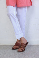Straight fit white plain trousers.
