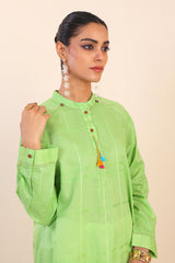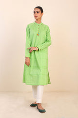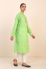 Dori kurta with stitching/tassels and button details on neckline, sleeves.