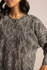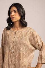 A classic-fit printed kurta featuring a round neckline and button detailing on the front placket. Paired with matching printed classic culottes for a coordinated look.