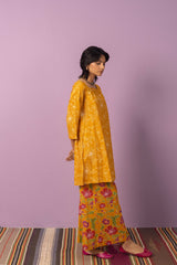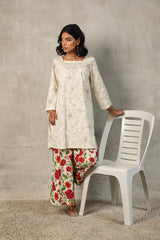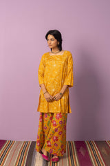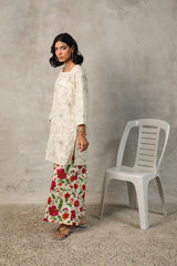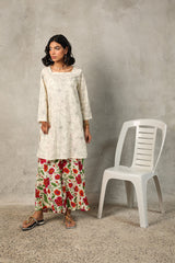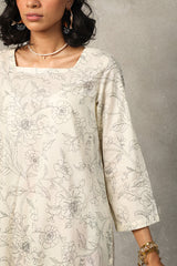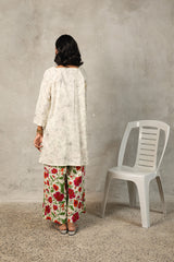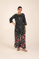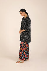 A timeless duotone-printed classic fit kurta featuring a square neckline for a structured yet effortless look. Paired with vivid floral-printed classic culottes, adding a striking contrast and a touch of vibrancy to the ensemble.