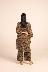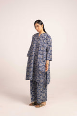 A jacquard-inspired printed paneled kurta featuring a round neckline with a V-slit, adorned with a delicate tassel detail. The authentic jacquard patterns add timeless charm, beautifully paired with matching printed culottes for a sophisticated look.