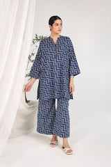 A relaxed-fit printed kurta featuring a round neckline with a V-slit, adorned with playful tassel detailing for a touch of charm. Paired with matching printed culottes, this outfit offers effortless comfort and stylish look.