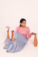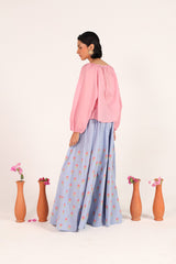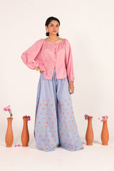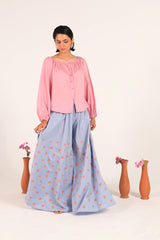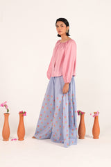 Block-printed, floral sharara offers a graceful silhouette with vibrant patterns, blending comfort and style. Perfect for pairing with a variety of classic or contemporary kurtas.