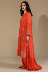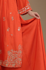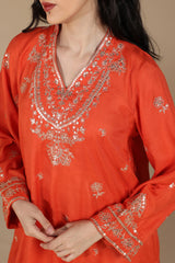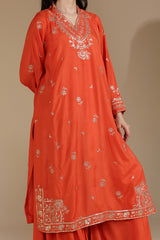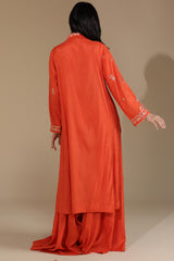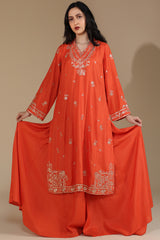 Embroidered classic-fit paneled shirt, adored with delicate sequins and embroidered detail. Paired with a generously flared sharara to create a refined statement silhouette.