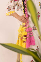 A paranda featuring beautifully braided strands, adorned with intricate and subtle zari work. Its strong, elegant weave adds a touch of tradition, grace, and timeless feminine charm to any look.