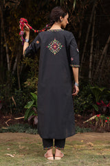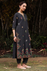 Handcrafted classic straight-fit shirt adorned with delicate tukri work, enhanced with aina accents and stitching details. Finished with refined dori piping for a polished touch. Paired with a pegged shalwar featuring coordinating tukri detailing along the hemline.