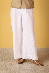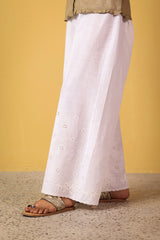 Classic-fit culottes crafted from breathable fabric, adorned with embroidered detailing and a scalloped hemline, adding graceful depth to this versatile piece.