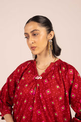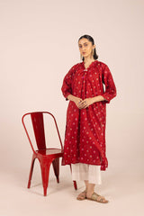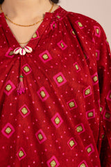 A classic-fit, vibrant printed kurta featuring a band V-style neckline adorned with shells and tassel details. Soft gathers around the neckline add graceful flare, complemented by cuffed sleeves. Pairs effortlessly with any Generation fit for a complete look.