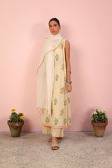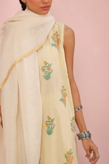 A lightweight resham check dupatta adorned with elegant golden borders and delicate thread frill detailing, adding a graceful finish to both festive and everyday traditional looks.