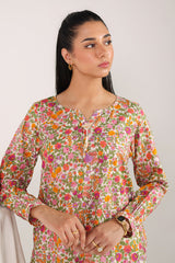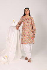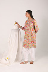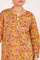 A floral printed classic-fit kurta featuring a round neckline with a V-slit, delicately adorned with phool and tassel embellishments. Finished with cuffed sleeves, this versatile piece can be paired with any generation of bottoms for a fresh, effortless look.