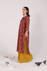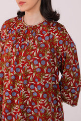 An easy-fit printed kurta with a round neckline, adorned with delicate lace trims on the neck and sleeve hems. Pair it with any Generation bottoms for a complete everyday look.