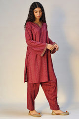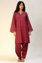Chunari-printed classic-fit shirt adorned with delicate embroidery along the neckline and sleeve hems, paired with a matching printed classic-fit shalwar.
