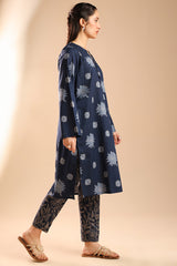 Classic-fit printed shirt designed with a round neckline and V-slit, adorned with delicate tassel detailing. Relaxed shoulders for an easy silhouette. Paired with coordinating printed straight-fit trousers.