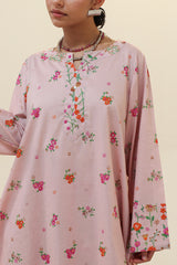 Classic-fit printed shirt with a round neckline and V-slit, adorned with delicate sequin detailing. Finished with a rounded shirt hem. Paired with coordinated printed culottes.
