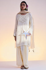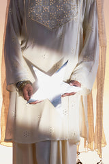 Embroidered classic-fit shirt adorned with delicate embroidered detailing enhanced with panni work. Comes with an inner for added comfort. Paired with a classic farshi shalwar.