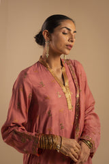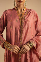 Sequin-embroidered classic-fit shirt with a low band neckline, adorned with delicate sequin detailing along the neckline. Paired with classic straight-fit trousers. Styled with a sequin-embellished dupatta, finished with sequin-embroidered borders for a refined, festive look.