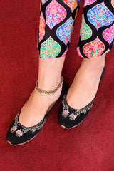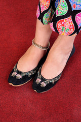 100% Genuine Leather Handmade Khussa with hand-done adda and ari embroidery details with natural/fine leather used in inner lining. The Khussa is hand stitched with cotton thread. Comes with a cushioned padded base.