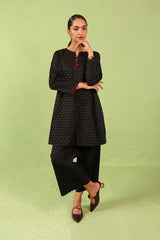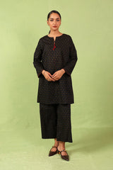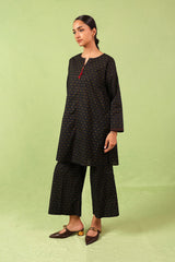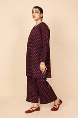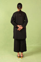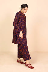 A loose fit printed tunic with round neckline with V slit, featuring tassel detailing at the front. Paired with matching printed culotte pants.