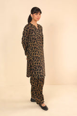 A loose fit printed kurta with a round neckline with V slit and rounded shirt corners. Paired with a matching printed classic fit shalwar.