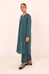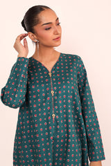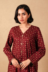 Minute printed A-line shirt with button details on placket, paired with loose fit printed pants.