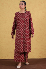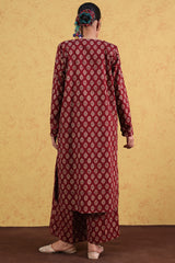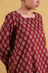 Hand block–printed classic-fit shirt with a square neckline and a relaxed silhouette. Paired with matching printed culottes for a coordinated, easygoing look.