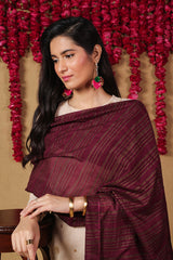 This Dupatta features self-printed lines, offering a subtle yet sophisticated texture. Finished with tassels at the corners, it's the perfect accessory to complement any outfits.