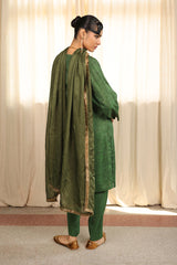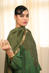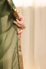 A luxurious silk dupatta ,finished with delicate kiran detailing along the edges, excuding grace and traditional charm.