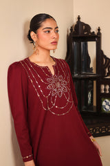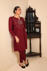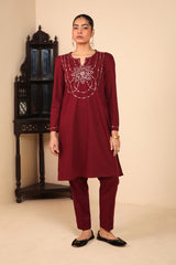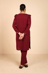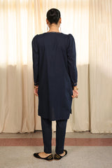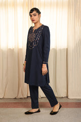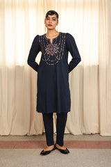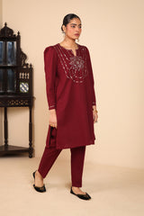 Hand embroidered, beadworkand sequins detailed shirt with puff sleeves. Paired with staright fit pants.