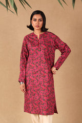 Printed medium length Kurta with tassels on neckline and stitched pleats on sleeves.