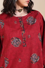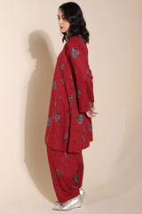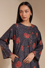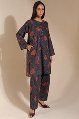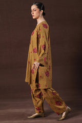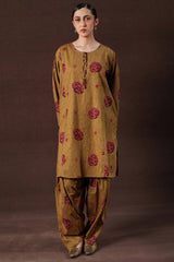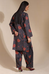 A printed shirt with a round neckline and buttoned front placket, styled with a side pocket for added functionality and ease. Paired with a matching printed classic-fit shalwar for a coordinated look.