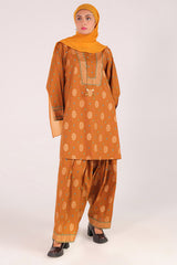 A classic-fit, gold-printed shirt with a round neckline and V-slit, finished with tassel detailing. Paired with matching, printed classic-fit shalwar for a coordinated look.