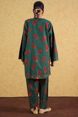 Paisley-printed classic fit shirt with a round neckline with a V-slit, adorned with tassel detailing. Paired with a matching printed pegged Shalwar.