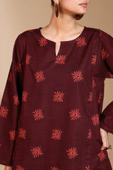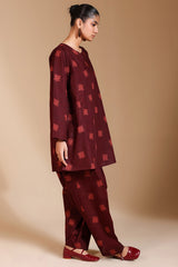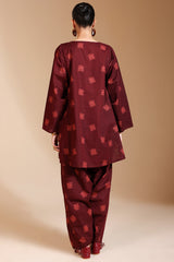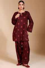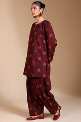 A classic-fit printed A-line paneled shirt with a round neckline and a V-slit, paired with a matching printed classic-fit shalwar.