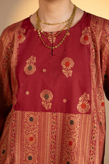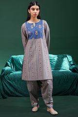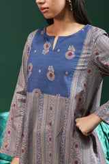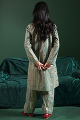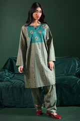 A classic-fit A-line printed shirt with a round neckline and V-slit. Paired with a matching printed classic-fit shalwar for an effortless look.
