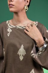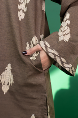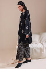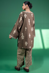An A-line printed shirt with a square neckline, paired with complementary printed culottes for a coordinated look.