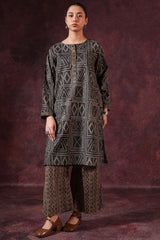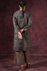 A classic-fit printed shirt with a round neckline and buttoned front placket, featuring side pockets. Paired with printed culottes for an effortlessly chic look.