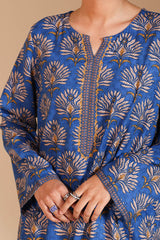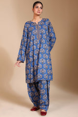 A classic-fit printed shirt with a round neckline and V-slit. Paired with a matching printed classic-fit shalwar for a coordinated, elegant look.