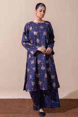 Classic-fit printed shirt with a square neckline, adorned with gota lace detailing along the neckline and sleeve hems. Paired with matching printed culottes for a look that blends tradition with modern ease.