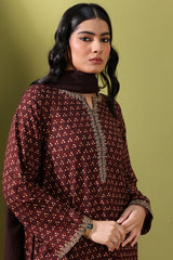 Classic-fit printed shirt with a round neckline and V-slit, adorned with delicate golden embroidered detailing along the neckline and sleeve hems. Paired with matching printed culottes.