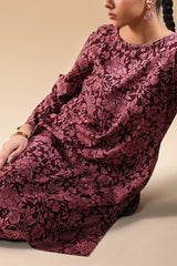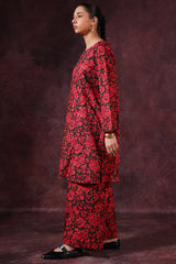Classic-fit floral printed shirt with a round neckline, adorned with delicate mukaish detailing. Paired with matching printed culottes.