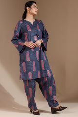 A classic-fit printed shirt with a round and V neckline adorned with fun tassel detailing. Features pleat detailing at the back for a graceful silhouette. Paired with a matching printed classic-fit shalwar.